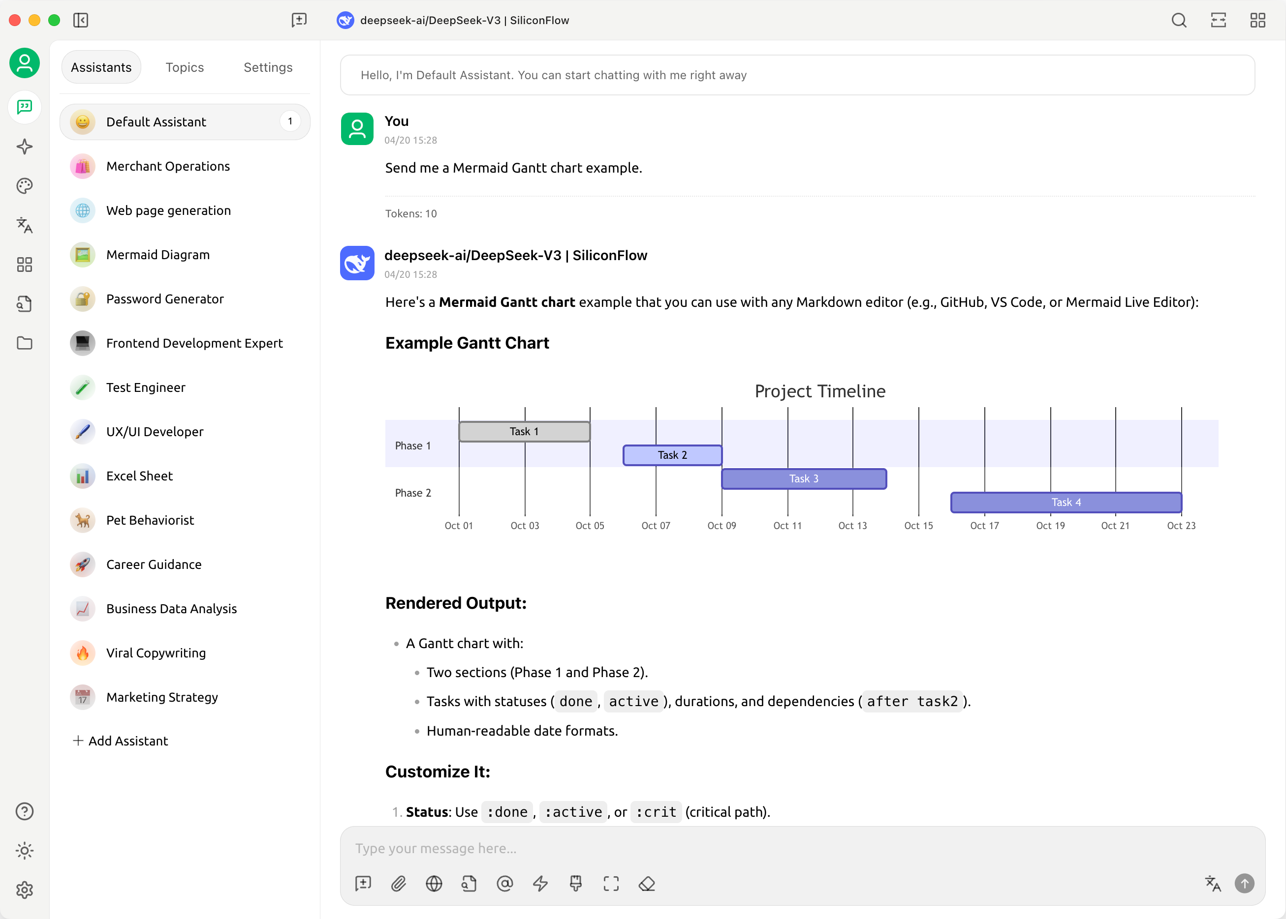 * **助手市场**：内置千余个行业专用助手，涵盖翻译、编程、写作等领域，同时支持用户自定义助手。