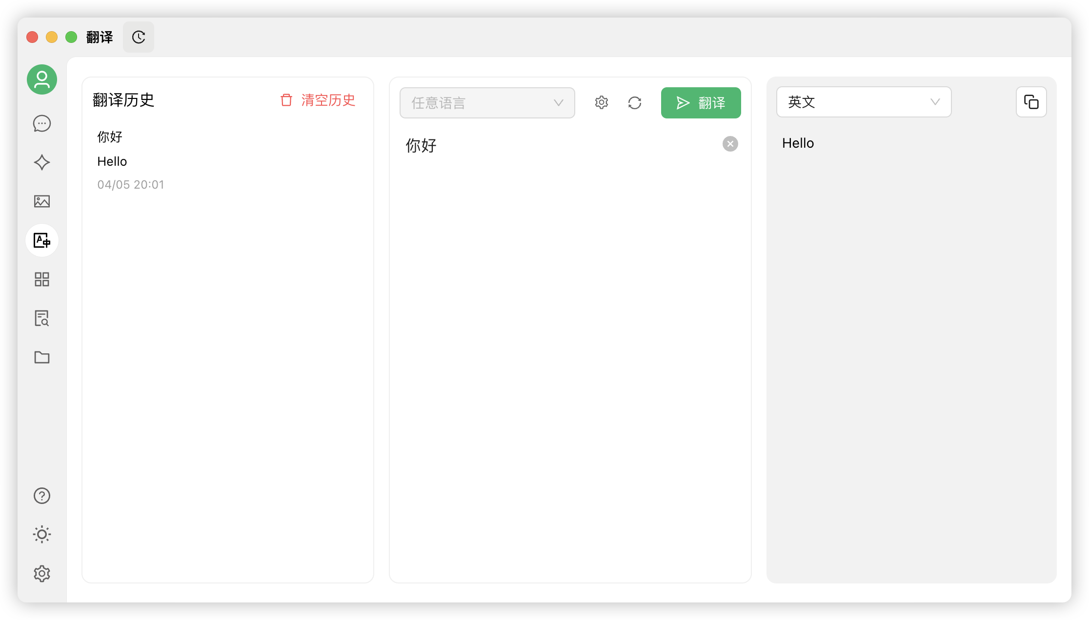 Cherry Studio 的翻译功能为您提供快速、准确的文本翻译服务，支持多种语言之间的互译。